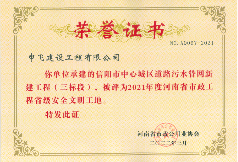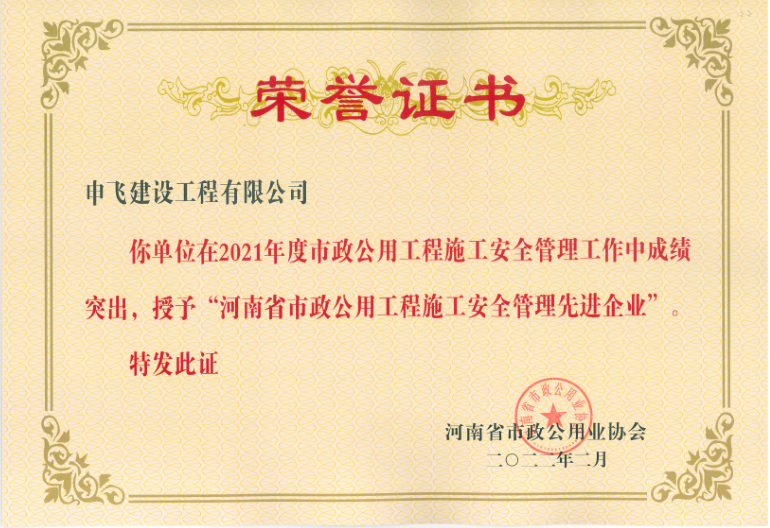 • [04-12]申飛建工再獲“省先進(jìn)施工企業(yè)”、 “市政金杯獎(jiǎng)”等多項(xiàng)榮譽(yù)