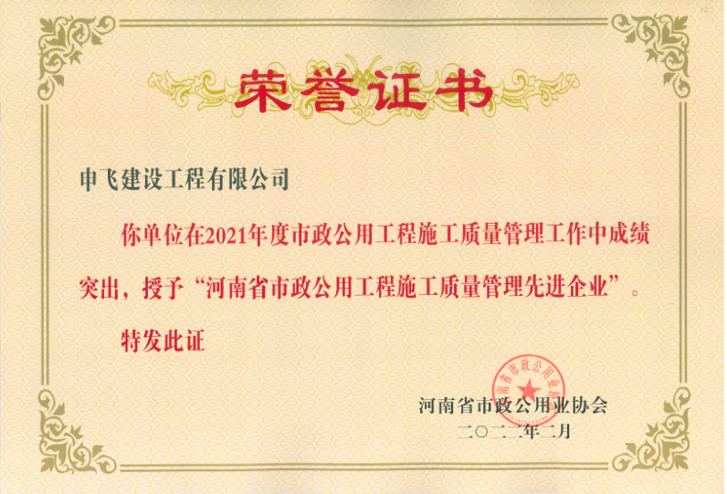 申飛建工再獲“省先進(jìn)施工企業(yè)”、 “市政金杯獎(jiǎng)”等多項(xiàng)榮譽(yù) 申飛建工再獲“省先進(jìn)施工企業(yè)”、 “市政金杯獎(jiǎng)”等多項(xiàng)榮譽(yù)